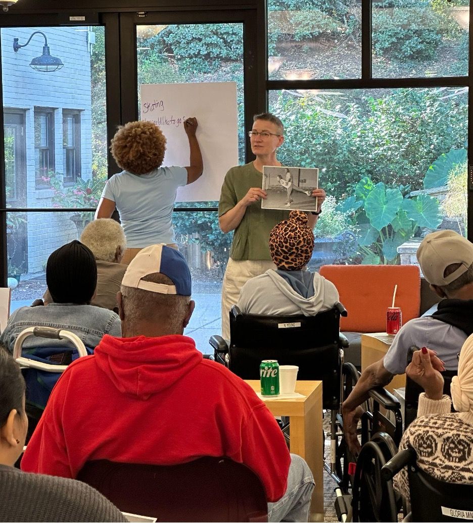 New Trainers Sonya Williams and Joan Meggitt facilitate a TimeSlips session at AG Rhodes in Atlanta, GA. Photo credit: Timeslips HOW IT WORKS