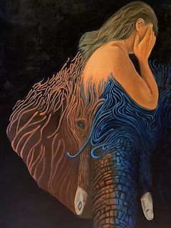 My work focuses on how to get what I see in the tiles onto the canvas, turning marble veins into surreal figures. They are characters in a fantastical world each with their own stories. When I show people the pattern in the marble, then the sketch on top of it, and then the painting (based on the pattern), their faces light up and they ask me to return to the pattern and walk them through it again. As a result of showing my work in this way, I've received many images in email and text from people who now see patterns. Some will even draw on top of the image and share that with me as well. I've found this to be a wonderful experience, and I believe using pareidolia as a basis for my work and sharing that with others can help viewers interpret ideas in new ways, be more imaginative and perceptive, and create moments of happiness.