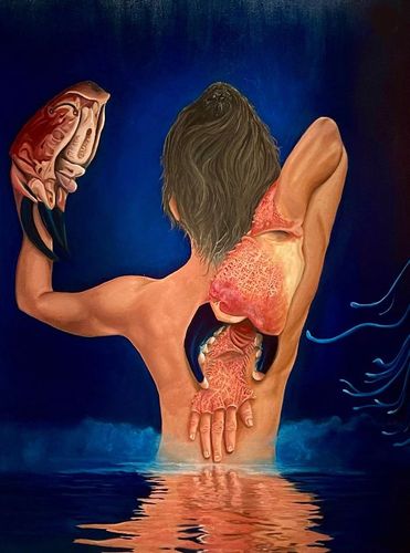 My current series of oil paintings are inspired by the marble vein patterns in my shower tiles. I leverage my ability to find somewhat human figures in these random patterns and bring them to life and create unique characters with individual personalities.