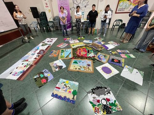 Common Threads Project’s (CTP) mission is to help individuals and communities to heal from the enduring psychological effects of sexual and gender-based violence (SGBV). We offer an innovative, evidence-based trauma healing method that combines neuroscience with a culturally responsive art approach, whereby survivors depict their experiences in story cloths, often stories too difficult to put into words. Through artmaking, psychoeducation, somatic techniques, and group therapy, participants process traumatic experiences, build resilience, and deepen social connections.