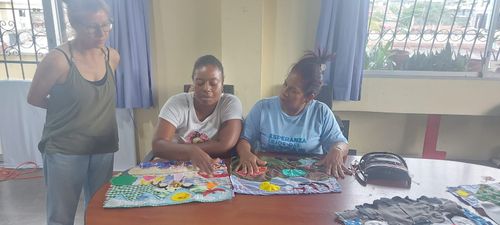 Our approach to therapy combines evidence-based group psychotherapy techniques with the creation of story cloths. It is informed by neurobiological research, which demonstrates that trauma lives in the body, in the sensorimotor system, as a result of automatic survival responses. We address trauma initially in non-verbal and somatic work, creating a context of emotional safety in which to overcome the residual effects of traumatic experience. Once they have the skills to manage strong emotional responses, participants describe experiences in textile form to begin the complex work of trauma processing.