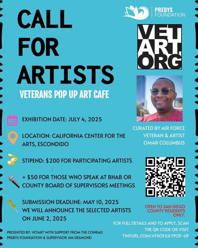 VETART received the 2020 Community Inspiration Award from the San Diego County Health Services Advisory Board for showcasing veteran artists' artwork throughout California and participating in governmental and organizational committees to advocate for the mental health benefits of art making in community.